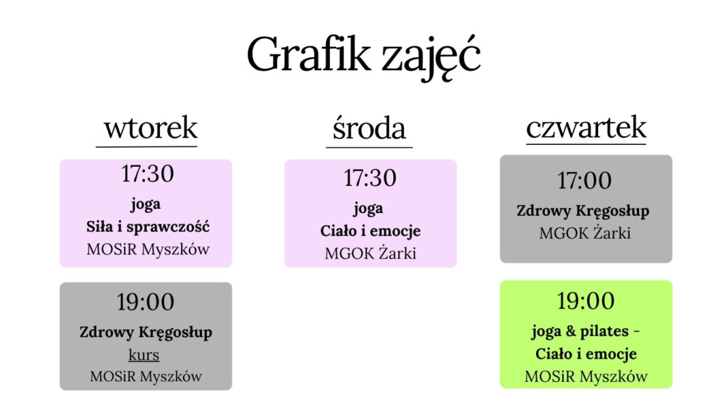 W przypadku nieobecności na zajęciach z powodów losowych uczestnik ma prawo odrobienia zajęć w innej grupie w ramach danego miesiąca lub następnego w przypadku miejsca na sali , ale tylko w przypadku zgłoszenia swojej nieobecności min 4 h przed zajęciami. W innym przypadku zajęcia przepadają.